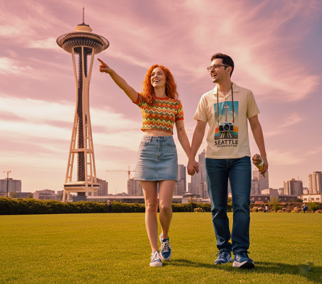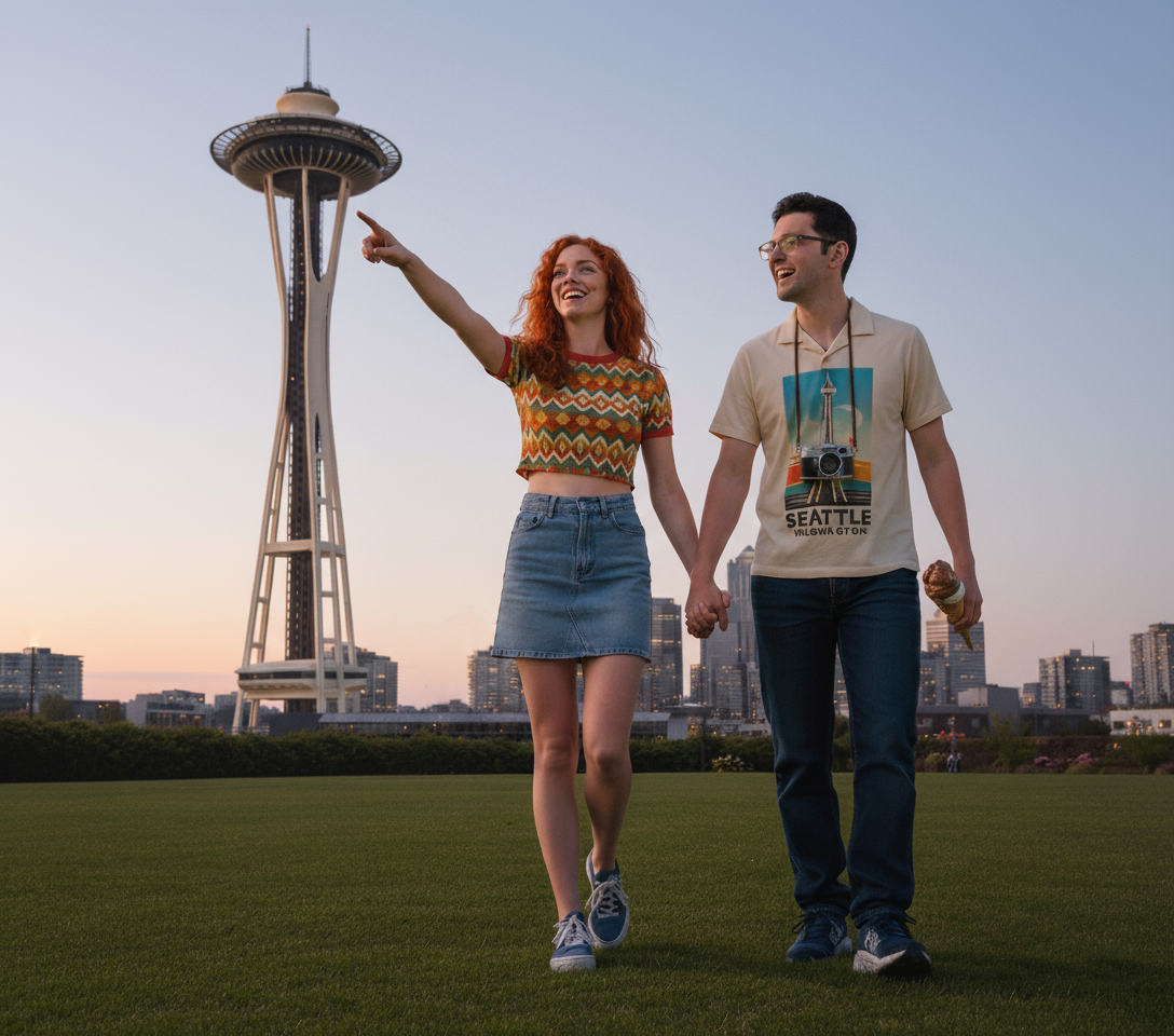 We walking around at the Seattle Space Needle.
